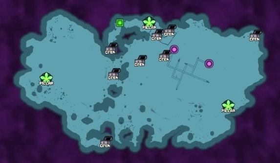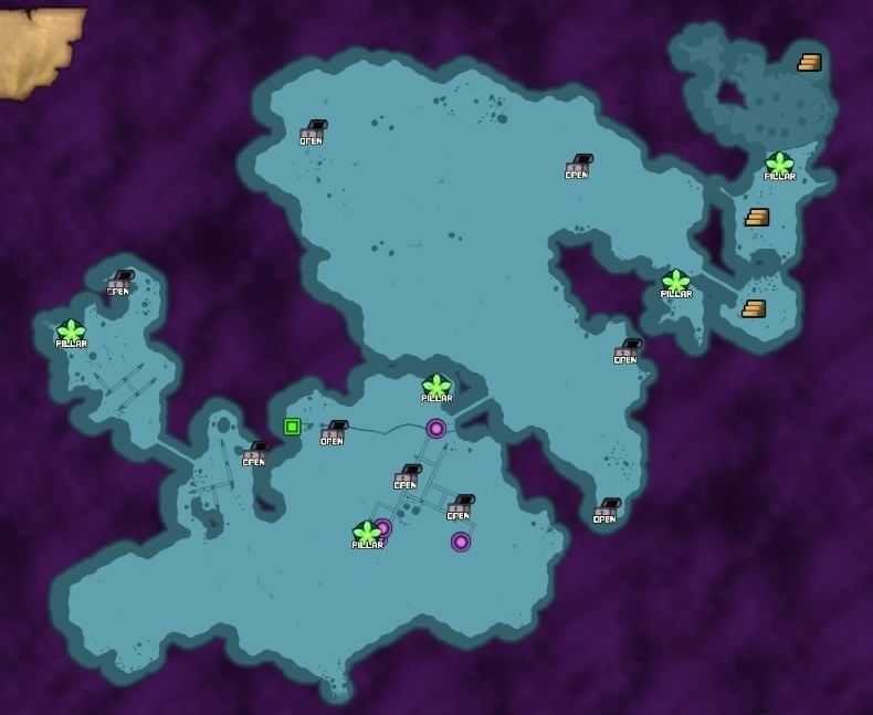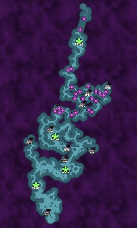 2本目のピラーの右上の黒ノ箱から、この時点では強力な魔撃武器の魂ノ欠片ノ刀剣Ⅸが入手できます。その前にレベル32の防魔の大岩がありますが、この時点でも十分到達可能ではないかと。